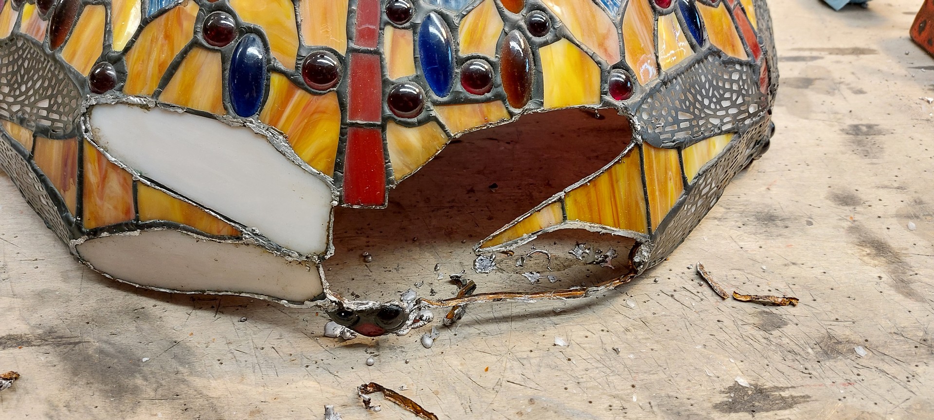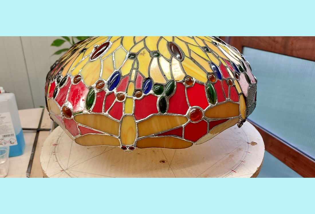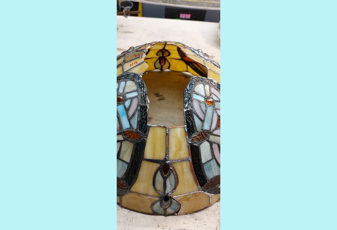 Yves herstelde de Tiffany lamp van onze oma weer helemaal als nieuw! Een erfstuk dat met zorg behandeld werd.